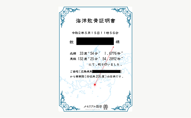 散骨場の土、お預かりした思い出の品々と散骨証明書、フォトアルバムなどは後日郵送いたします。