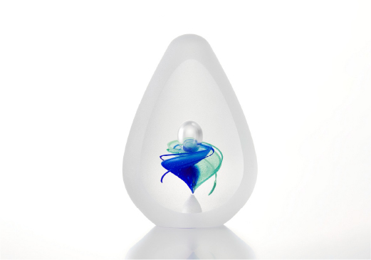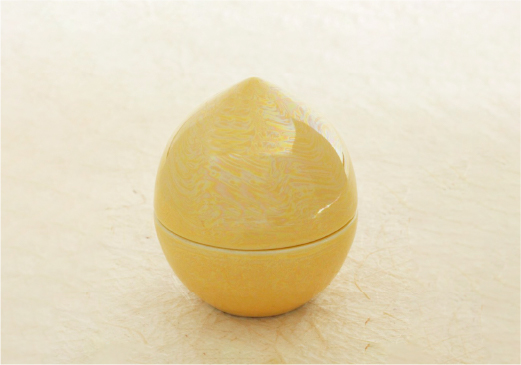 優しい曲線が光に反射して美しく光り輝くガラス骨壺は、